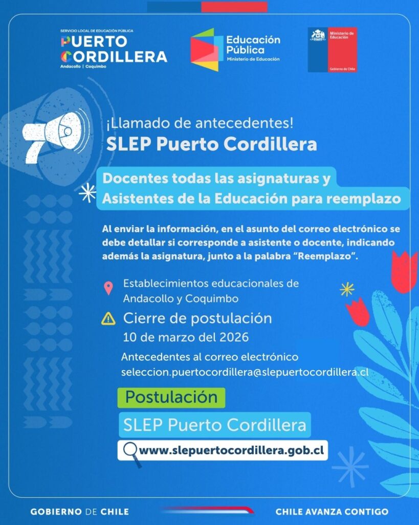 ✅¡Se parte del Servicio Local de Educación Pública Puerto Cordillera!